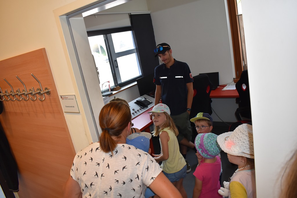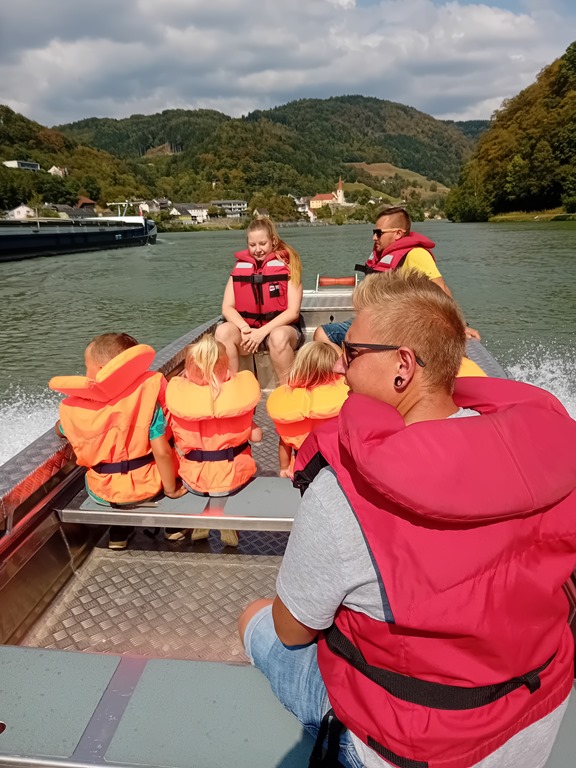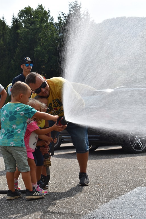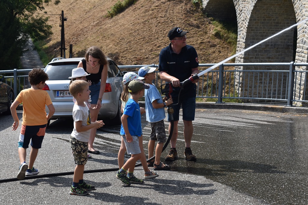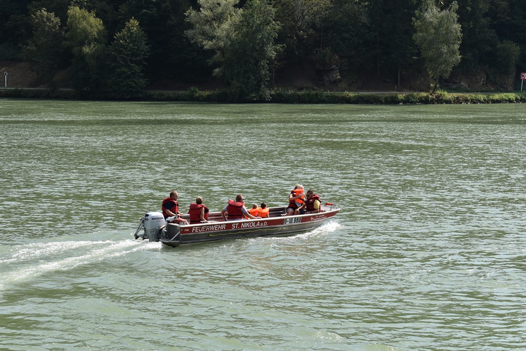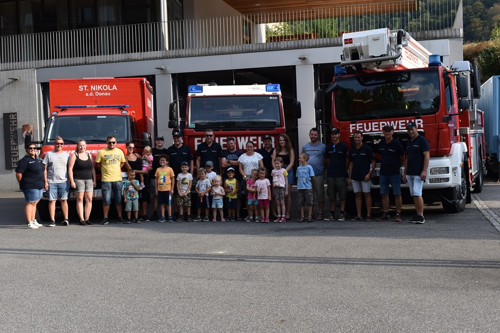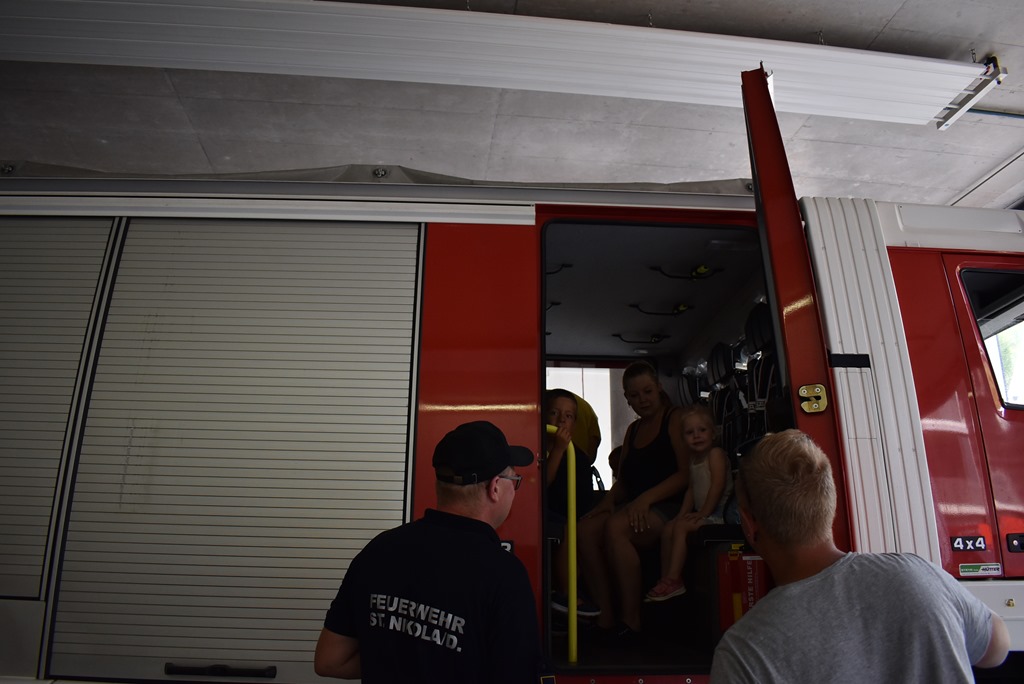 Besichtigung der Feuerwehrautos mit Rundfahrten; Wie gehe ich mit dem Funkgerät um ?; Bootsfahrt und das Highlight mit dem HUB ganz nach oben und St.Nikola von einer anderen Perspektive sehen.