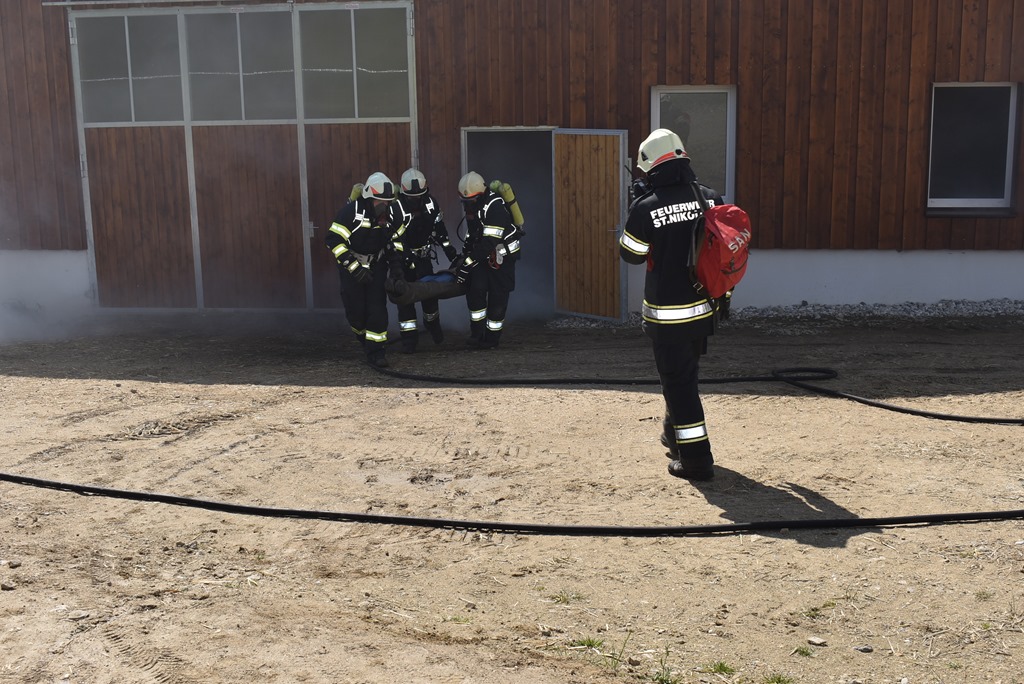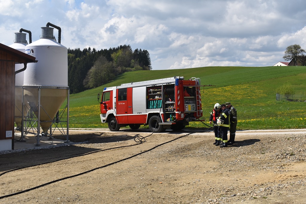 Am 24. April fand um 14:00 Uhr unsere jährliche Frühjahrsübung statt. Es hieß “Brand einer Halle” auf einem Bauernhof am Sattl. Wir waren mit dem TLF, KLFA-L und dem MTF zur Brandstelle unterwegs, als es hieß 2 Personen vermisst. Unser Atemschutztrupp machte sich gleich bei der Anfahrt bereit. Mit dem KLFA-L wurde eine Zubringerleitung von einem Brunnen gelegt,und mit den Löscharbeiten begonnen. Zugleich wurde mit dem TLF der Brand von der anderen Seite bekämpft. Der Atemschutztrupp befreite die 2 vermissten Personen mit dem Tragetuch, und übergaben sie den Ersthelfern. Wir konnten diese Übung mit 20 Mann gut abschließen und zur Nachbesprechung wieder ins Zeughaus zurück fahren.